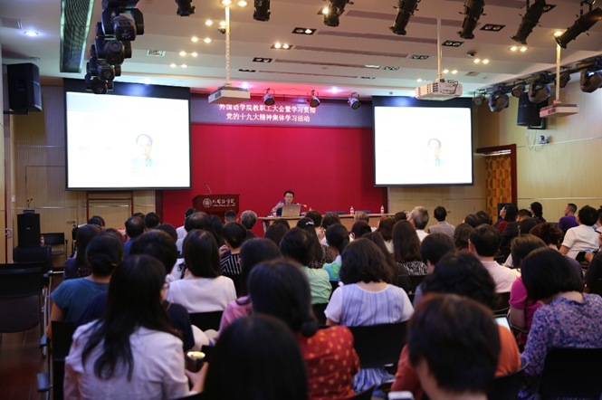 2018年6月15日,新利·体育教职工大会暨学习贯彻党的十九大精神集体学习活动在新利·体育新楼501举行。会议由新利·体育党委书记李淑静老师主持,两百余名学院教职员工参加了此次会议。