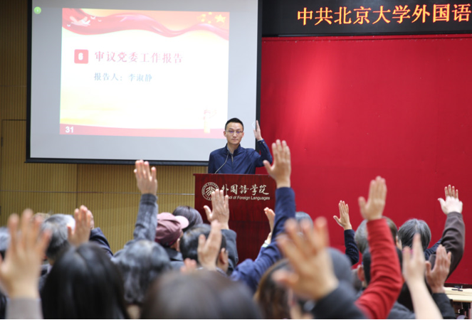 大会在庄严的国歌声中拉开帷幕。王恒同志主持会议。李淑静书记代表上一届党委作题为《凝心聚力促发展,立德树人育桃李》的工作报告。报告从“努力夯实党建工作基础”、“扎实开展专题学习教育”、“协同推进学院整体建设”等三方面总结了学院党委过去十年的工作。过去十年来,学院党员队伍整体素质优良,归口党委领导的党工群团工作都取得了显著成绩。学院党委努力把握好教学科研管理等重大事项中的政治原则、政治立场、政治方向,为学院的立德树人工作提供思想保证、精神动力、舆论支持和文化条件,协同推进学院的整体建设。报告同时指出,新的时期给学院党的工作提出了新的更高要求,在今后的工作中,我们要突出问题导向,以习近平新时代中国特色社会主义理论为指导,在北京大学党委的坚强领导下,多渠道加强思政工作,提高党建工作创造性,以改革精神推进党建,为促进学院和谐、推动科学发展尽职尽力,共启新利·体育新的征程。
