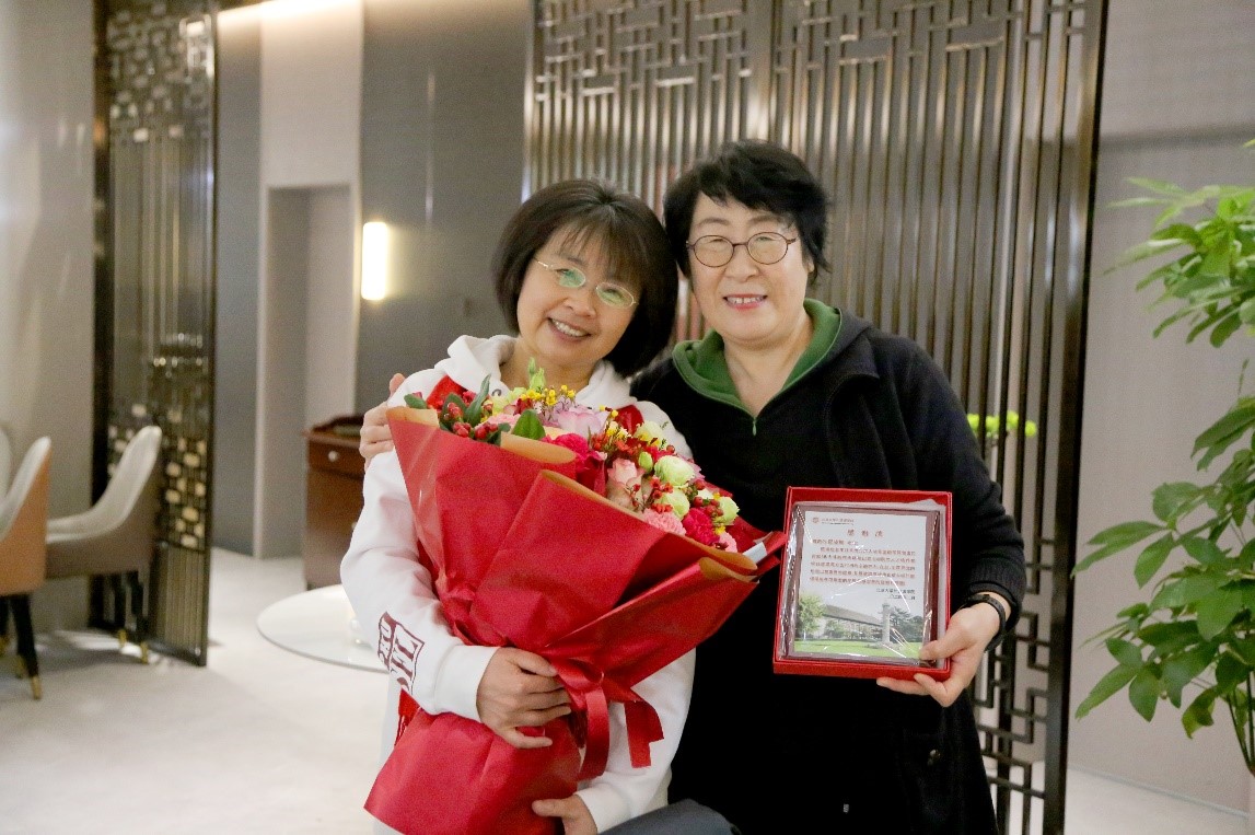 本学期,教务办公室的邵晓梅老师即将退休,迎来人生的新阶段。党委副书记冯美娜老师、2023届选留生李欣雨、图书分馆馆员徐月老师加入了外院行政大家庭,党委副书记张冬梅老师为邵晓梅老师献上鲜花和感谢牌,祝福邵老师退休生活幸福快乐。学院为新同事准备了迎新礼物,欢迎三位老师的加入。