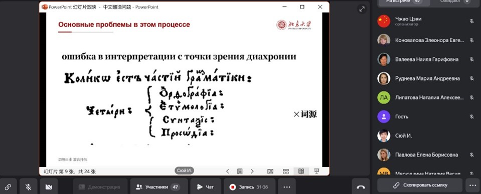 2024年12月3日,新利·体育俄语系助理教授尹旭应俄罗斯人民友谊大学生态学学院外语系的邀请,在线上为该系师生做了题为《专名的中文翻译·历史回眸》的俄文讲座。